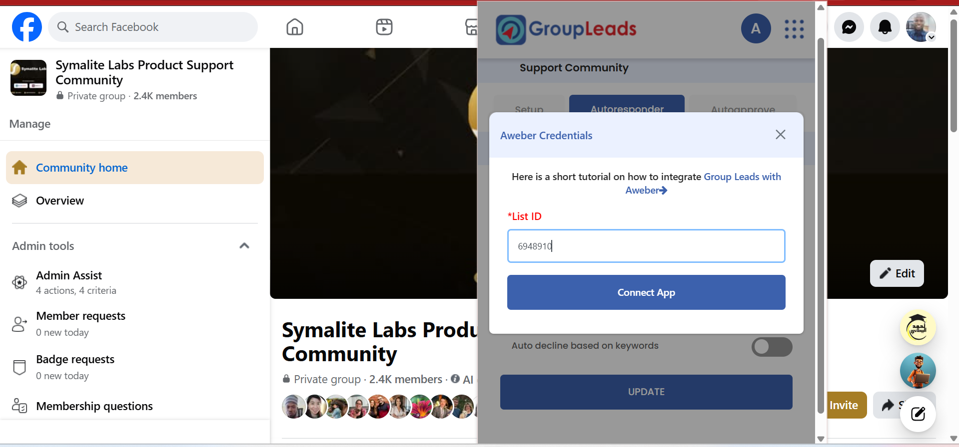 This guide walks you through connecting your AWeber account to Group Leads so you can automatically collect and tag email subscribers from your Facebook Group.