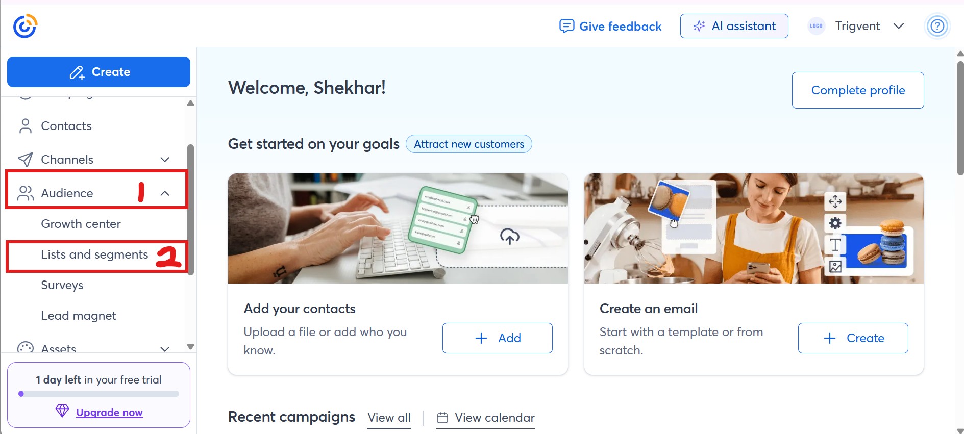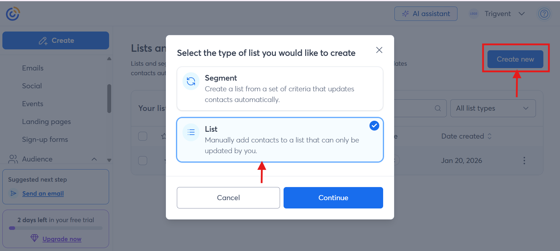 - Select Lists & Segments from the drop-down