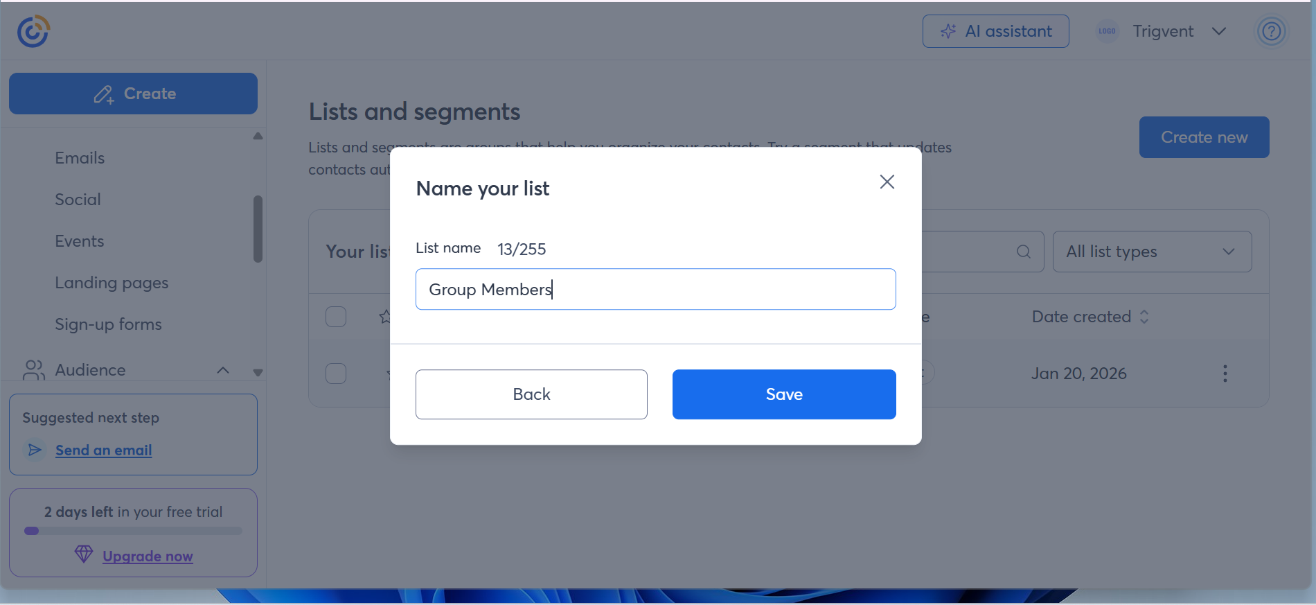 - Enter your list name and click Save