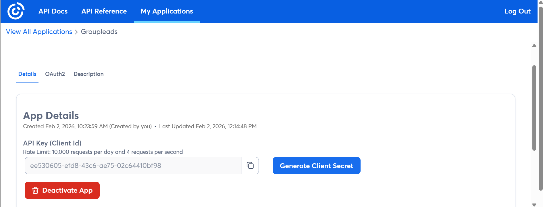 - Click Generate Client Secret