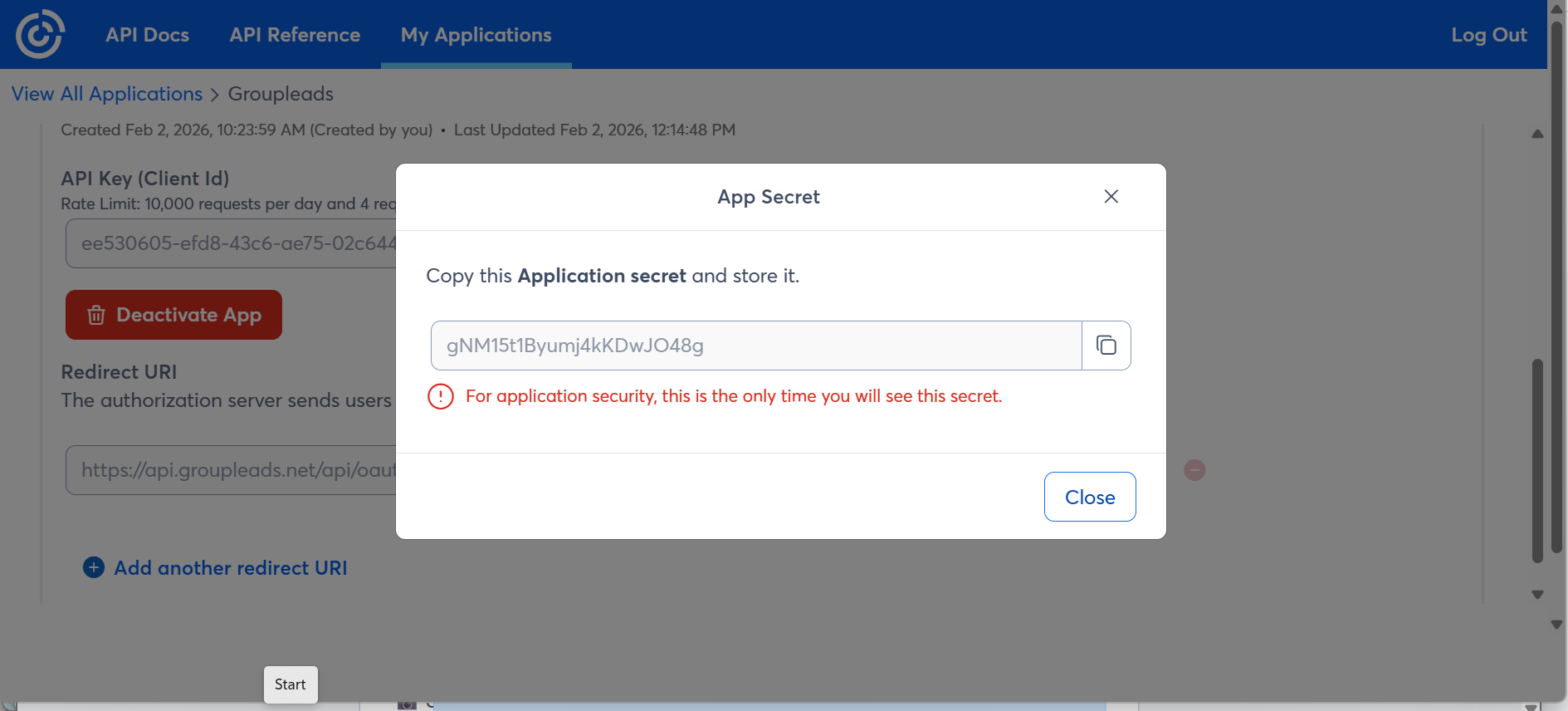 - Confirm by clicking Generate Client Secret again in the popup