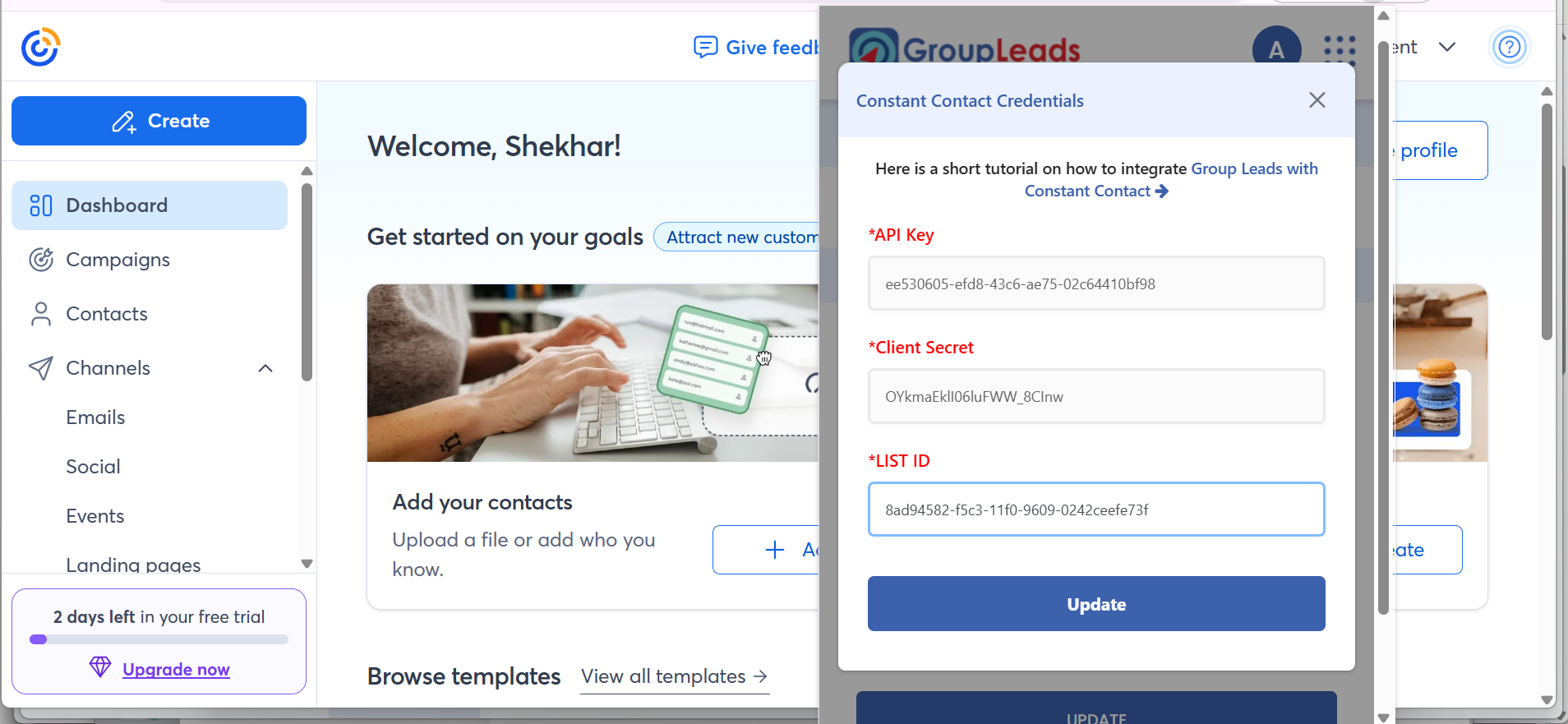Step 7: Connect Constant Contact in GroupLeads