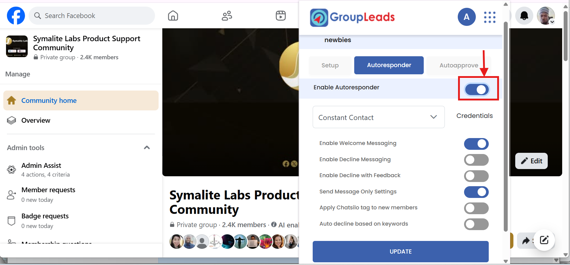 This guide walks you through connecting GroupLeads with Constant Contact so you can automatically send approved members to your email list using the autoresponder feature.