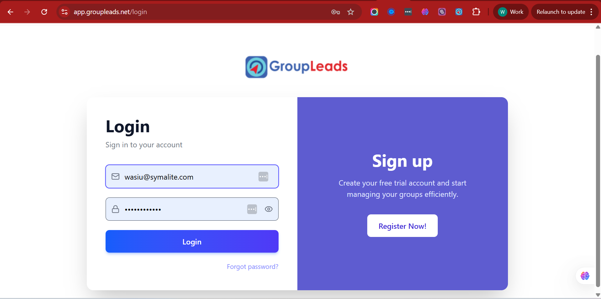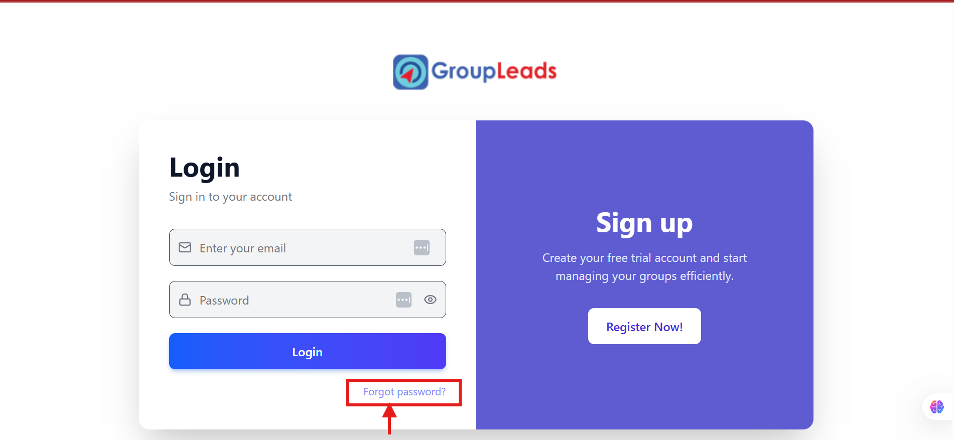 This guide shows you how to log in to your GroupLeads account and what to do if you forget your password.