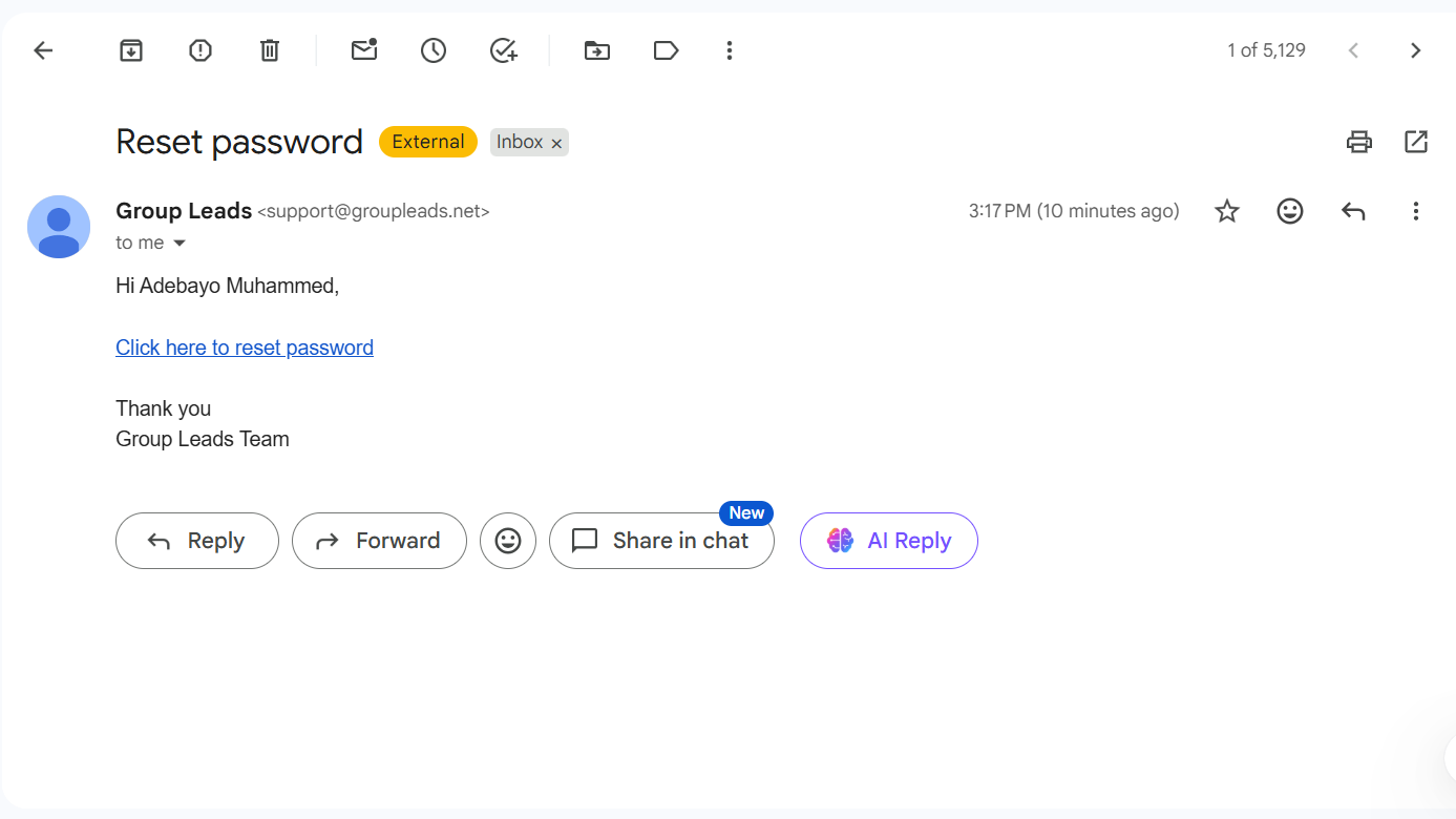 Open your email inbox and look for the password reset message. Then click the “Reset Password” link inside the email to proceed.