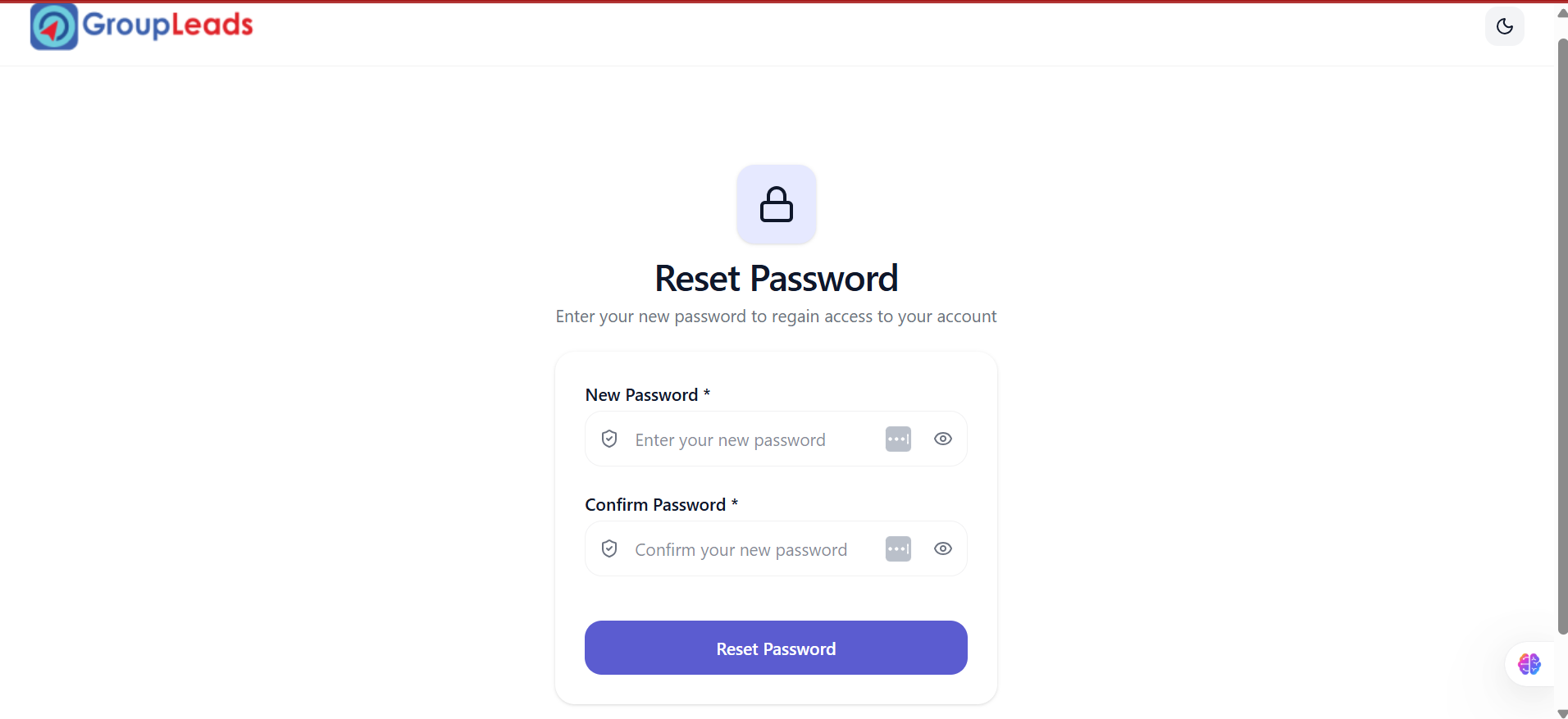 Enter your new password, confirm it in the second field, and click “Reset Password” to complete the process.