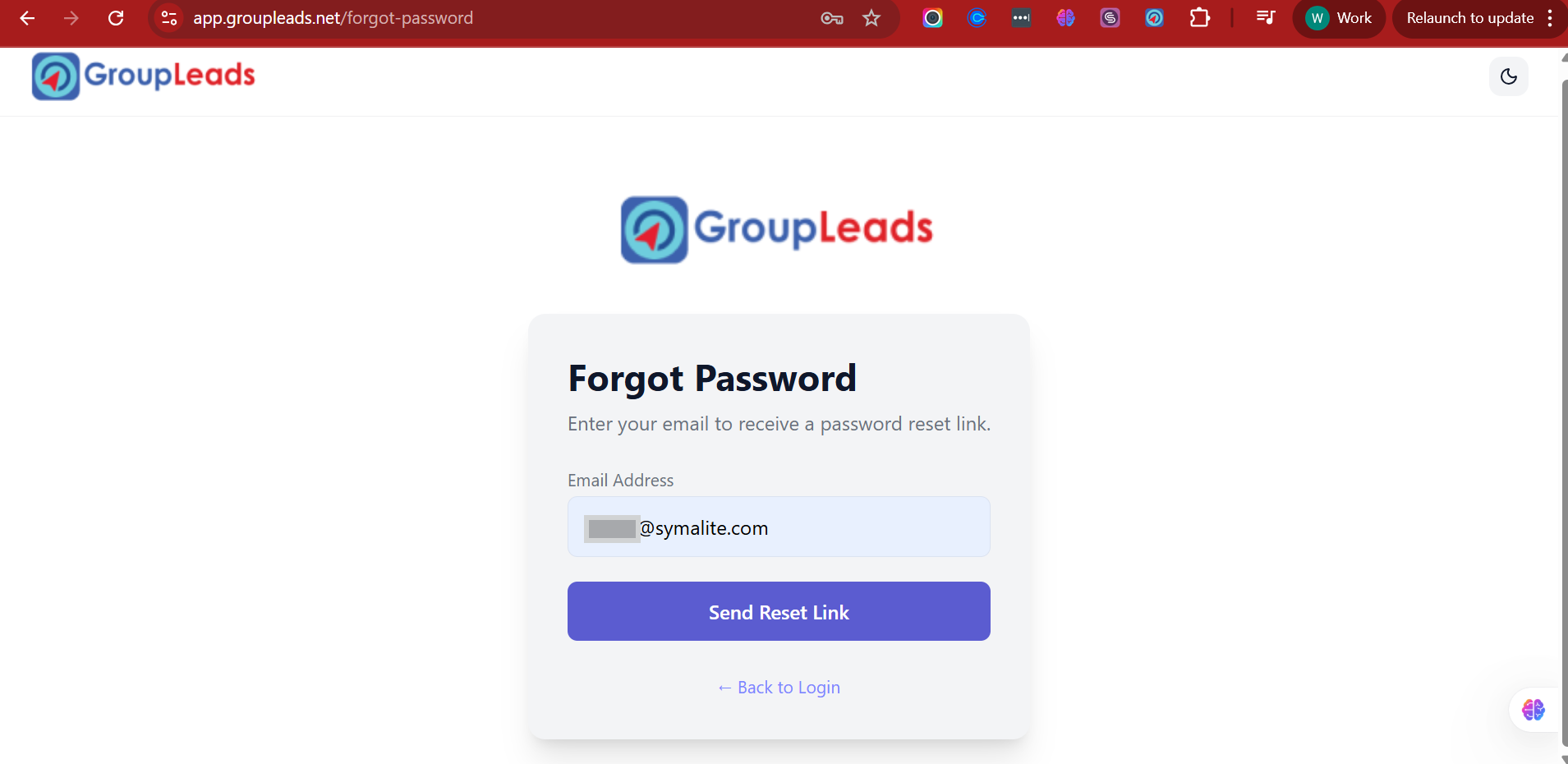 Type your email address into the email field, then click the “Send Reset Link” button to continue.