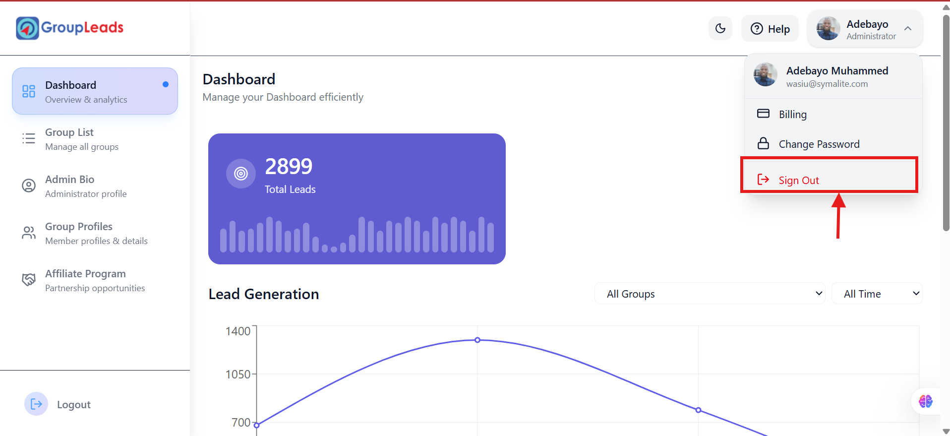 How to log out from Group Leads Web App