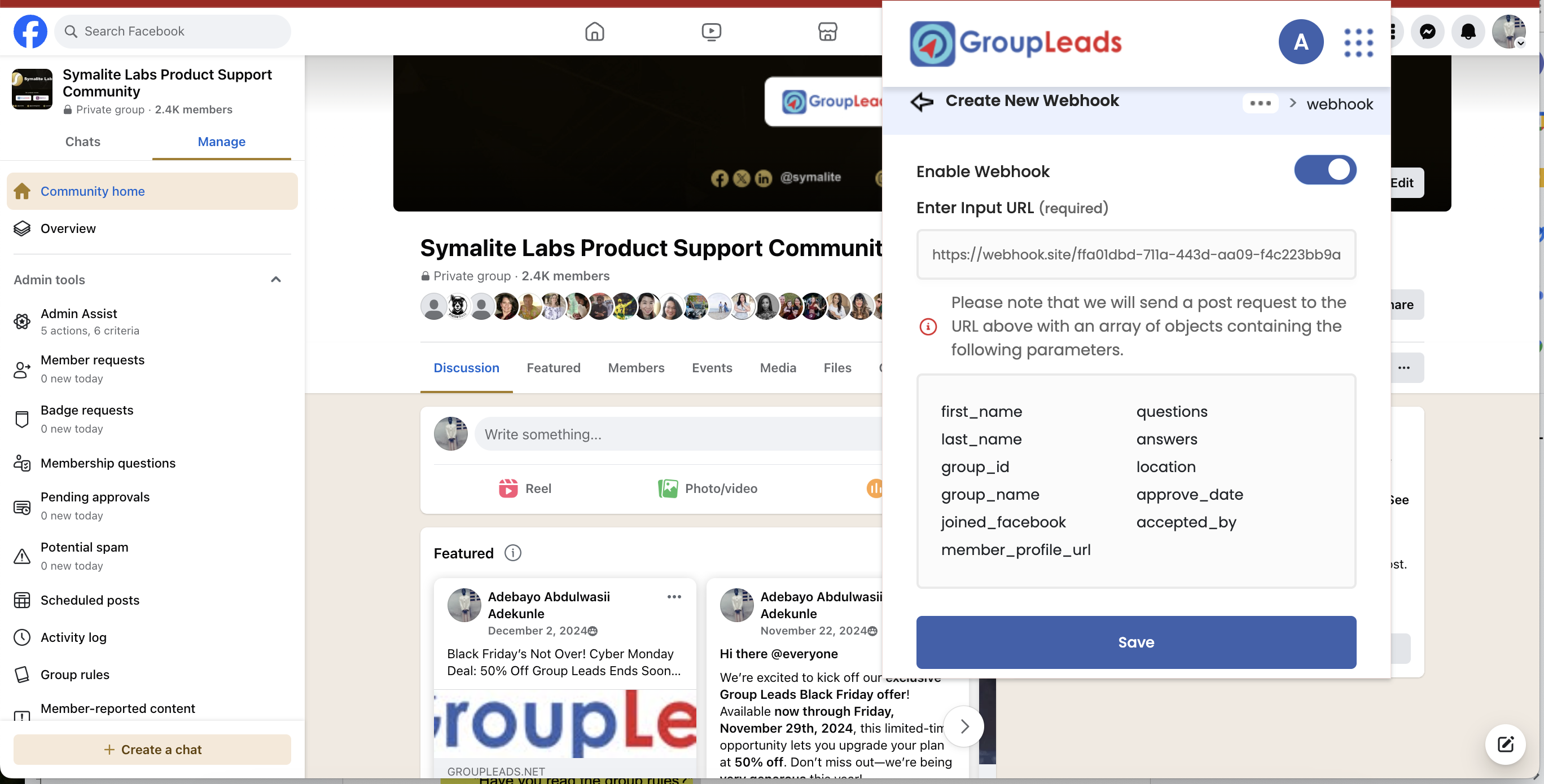 4. GroupLeads will now send member data to your server when a new member is approved.