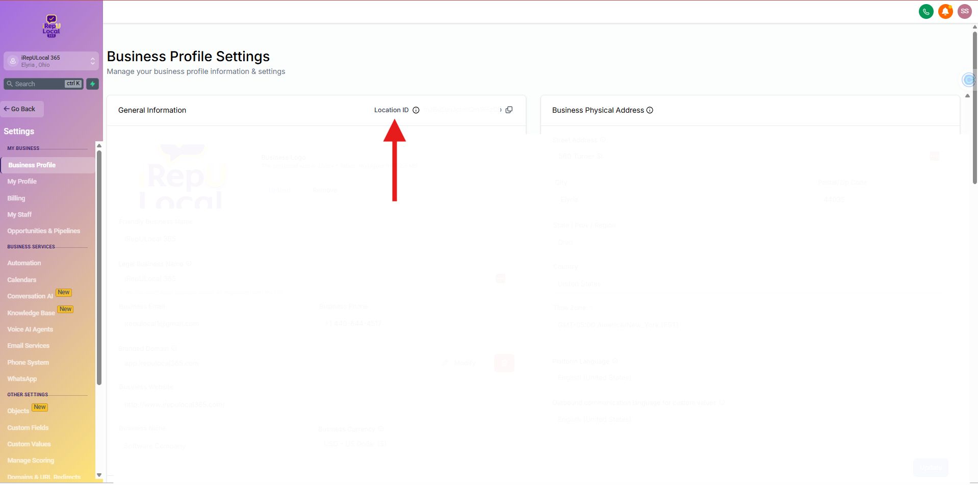 - Copy the Location ID and paste it into a notepad or text file for later use.